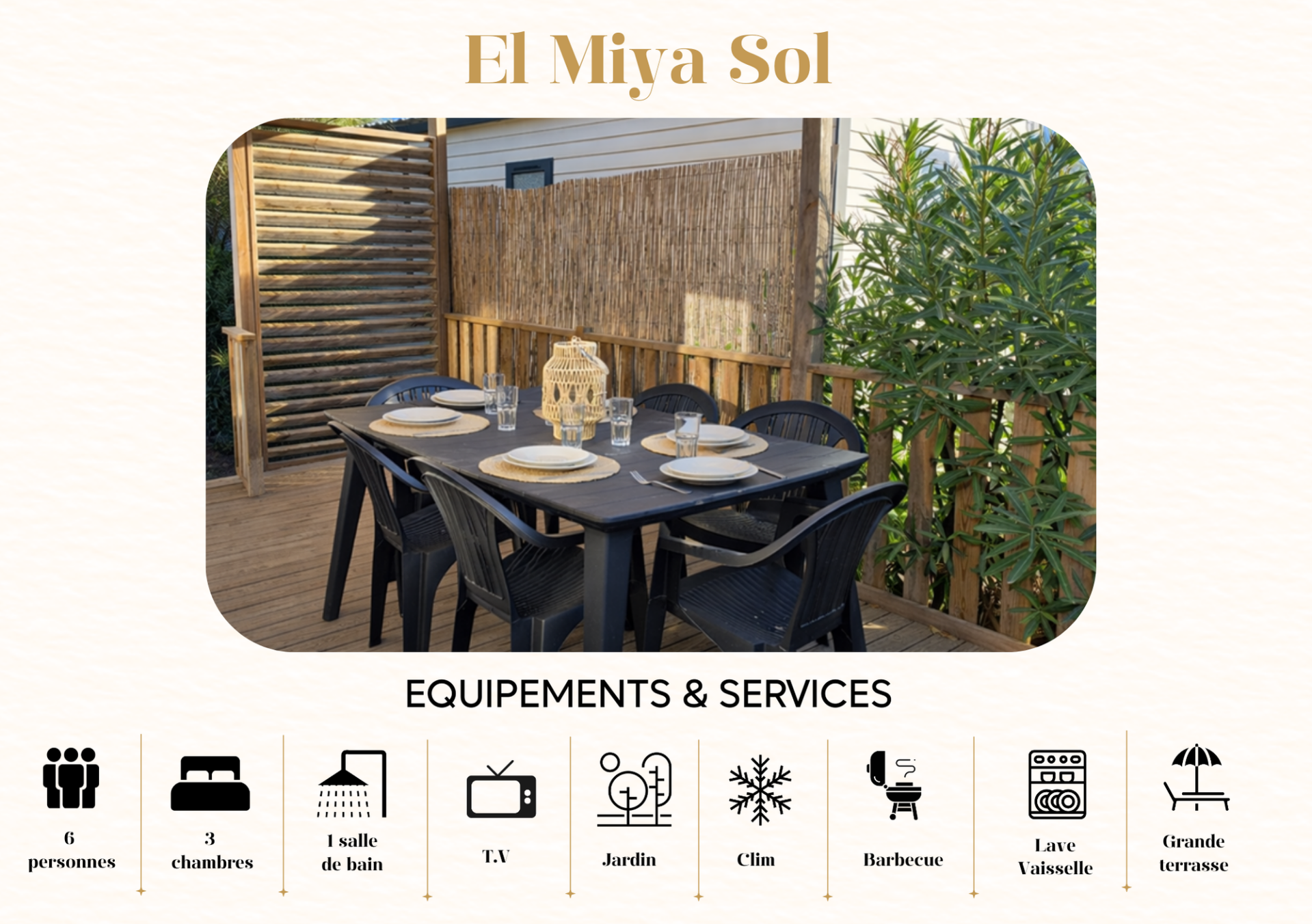 Consultez les disponibilités du mobil-home El Miya Sol et préparez vos prochaines vacances au bord de la Méditerranée.