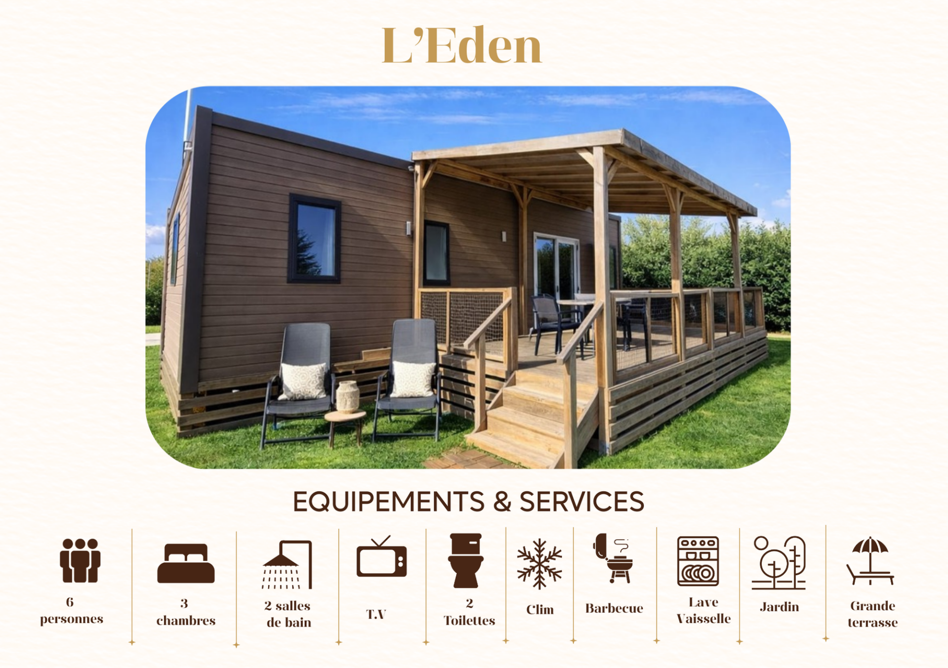 L’Eden se distingue par son aménagement moderne et fonctionnel, idéal pour accueillir jusqu’à 6 personnes dans un environnement confortable.