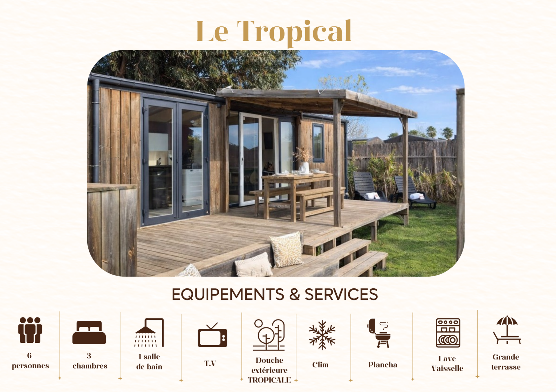 Le Tropical offre une expérience vacances unique combinant confort, originalité et emplacement privilégié.