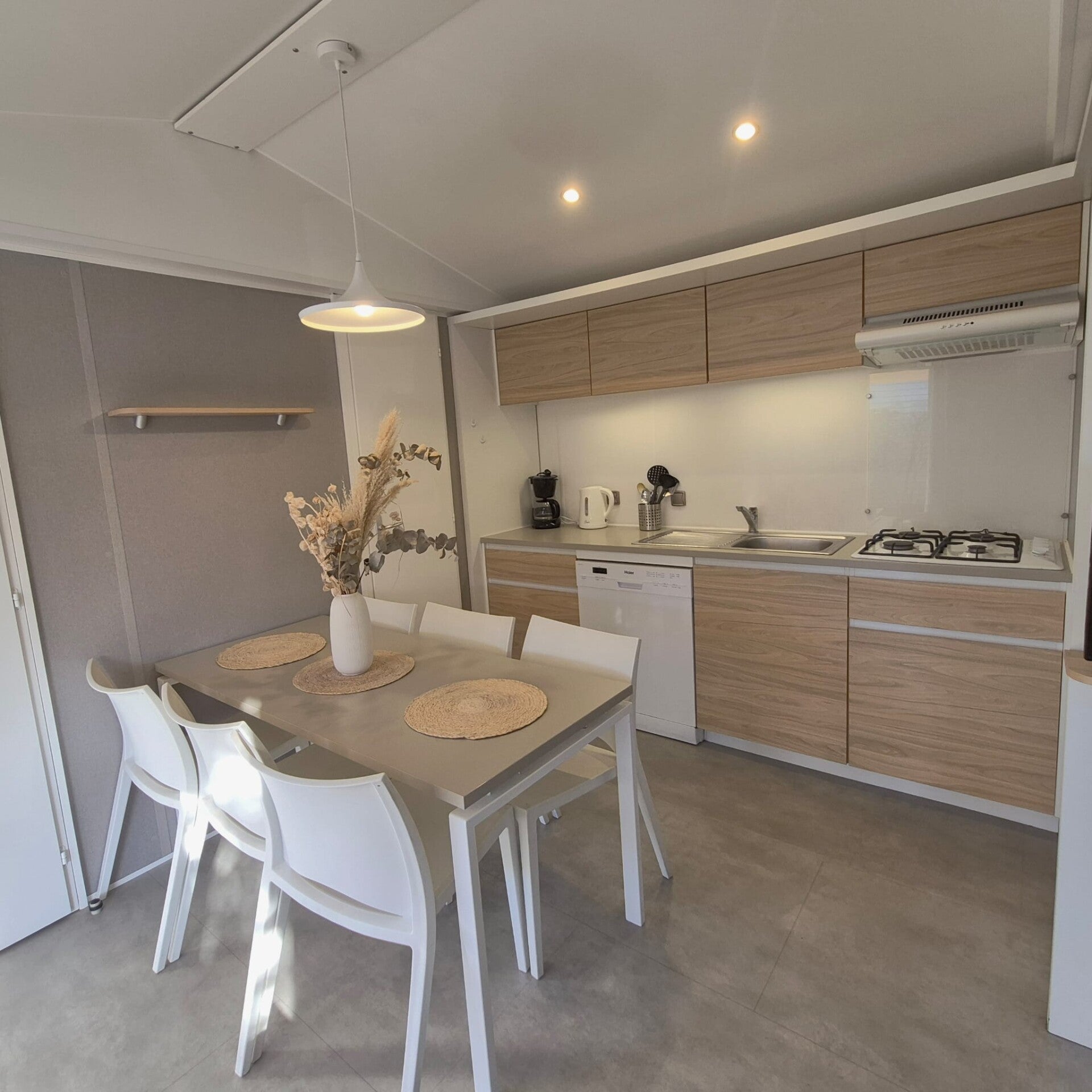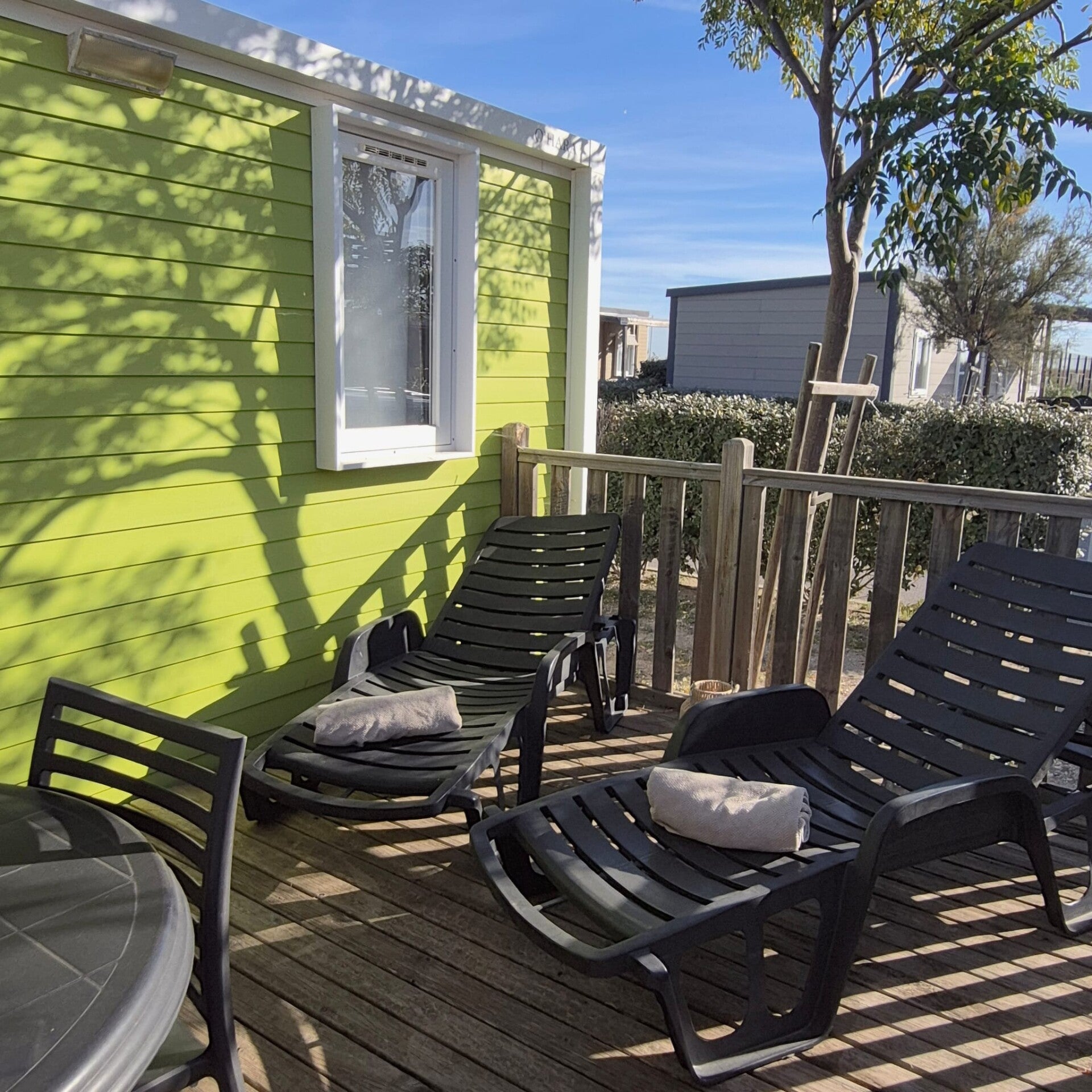 Découvrez L'Oasis , Mobil Home Climatisé 6 personnes idéalement situé à deux pas de l’accès plage du kids club et des terrains sportifs.