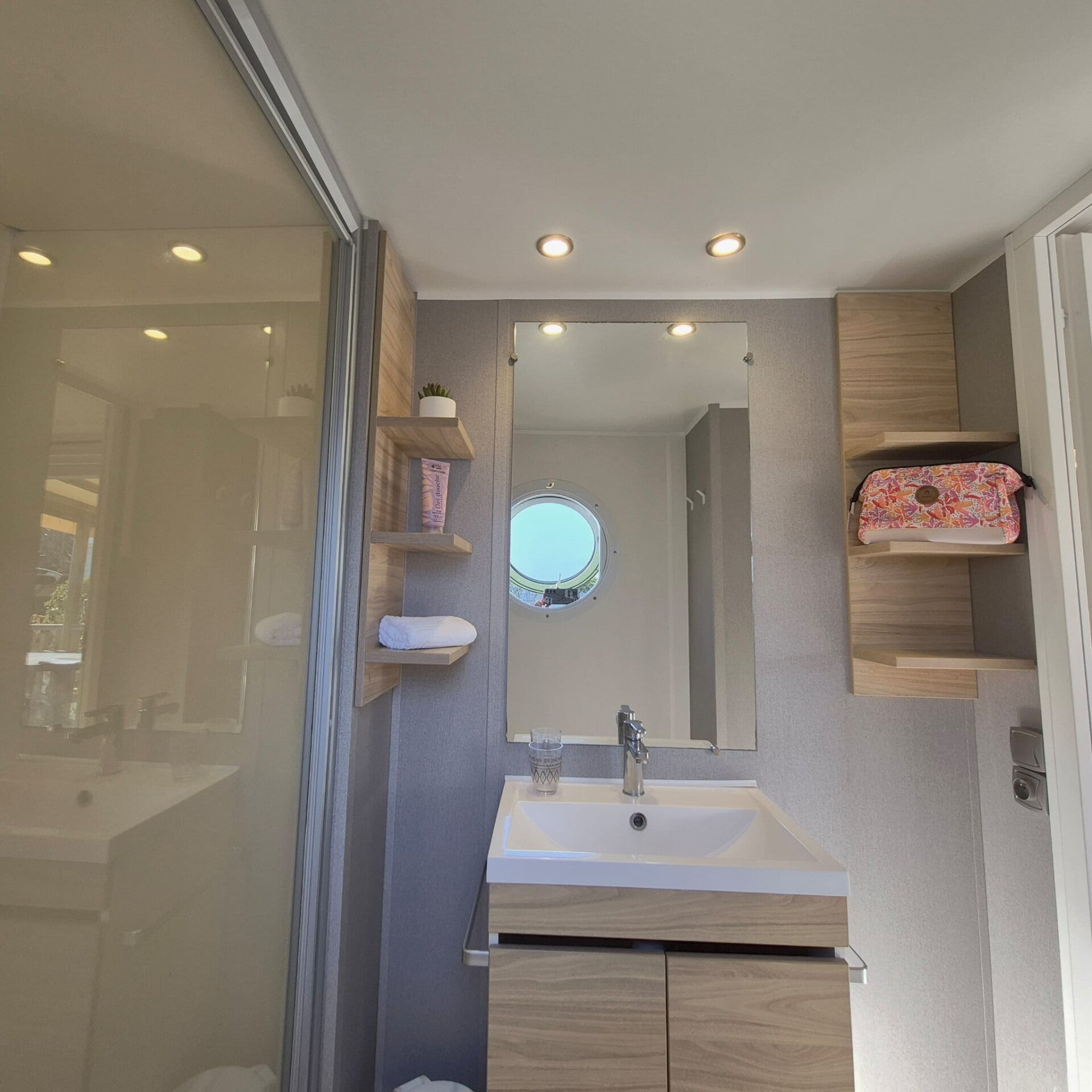 Ce mobil-home vous accueille dans un cadre paisible, parfait pour savourer vos vacances loin de l’agitation des animations.