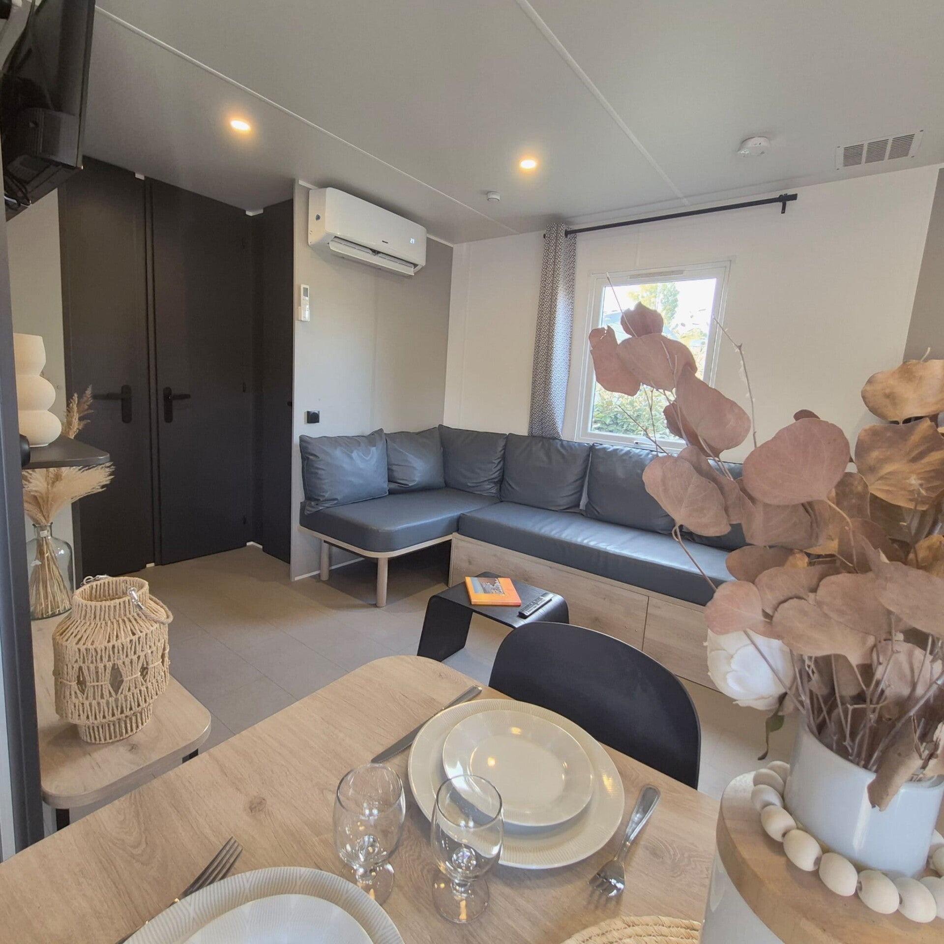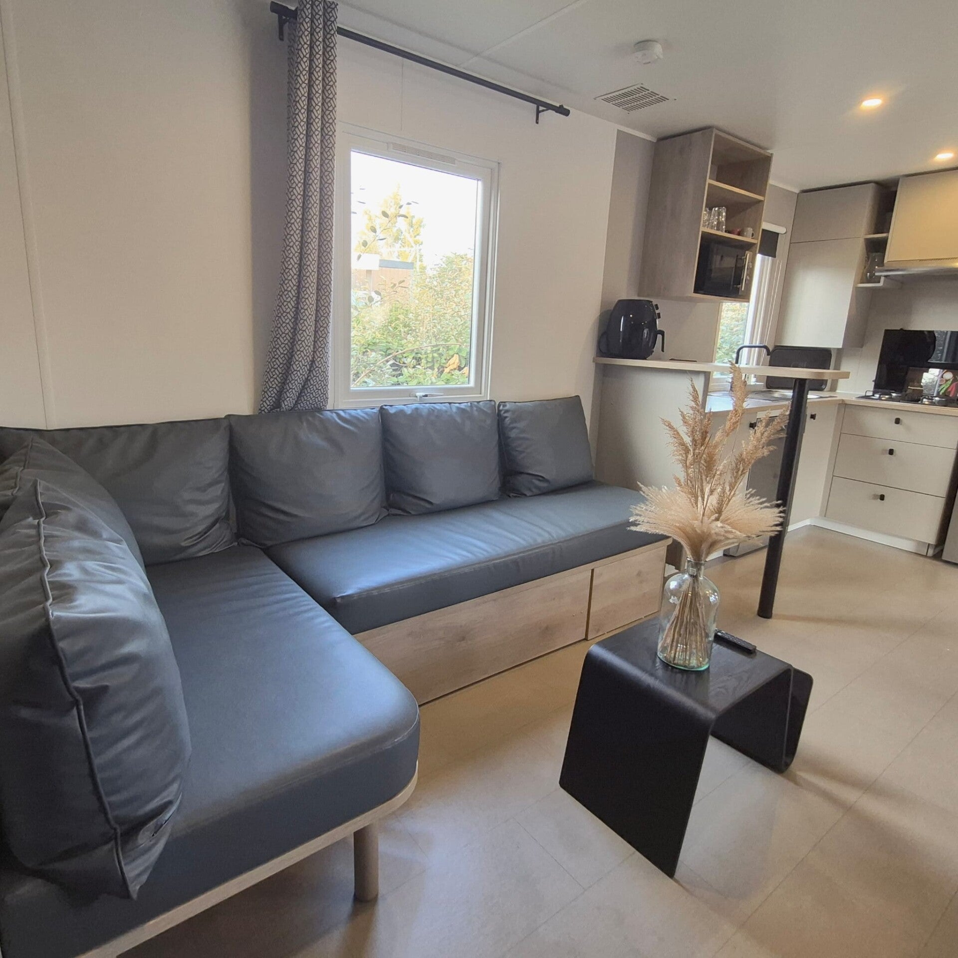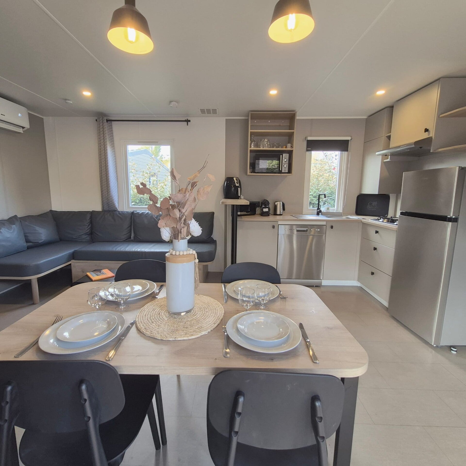 Ce mobil-home vous accueille dans une ambiance chaleureuse et contemporaine, pensée pour votre bien-être et votre détente.