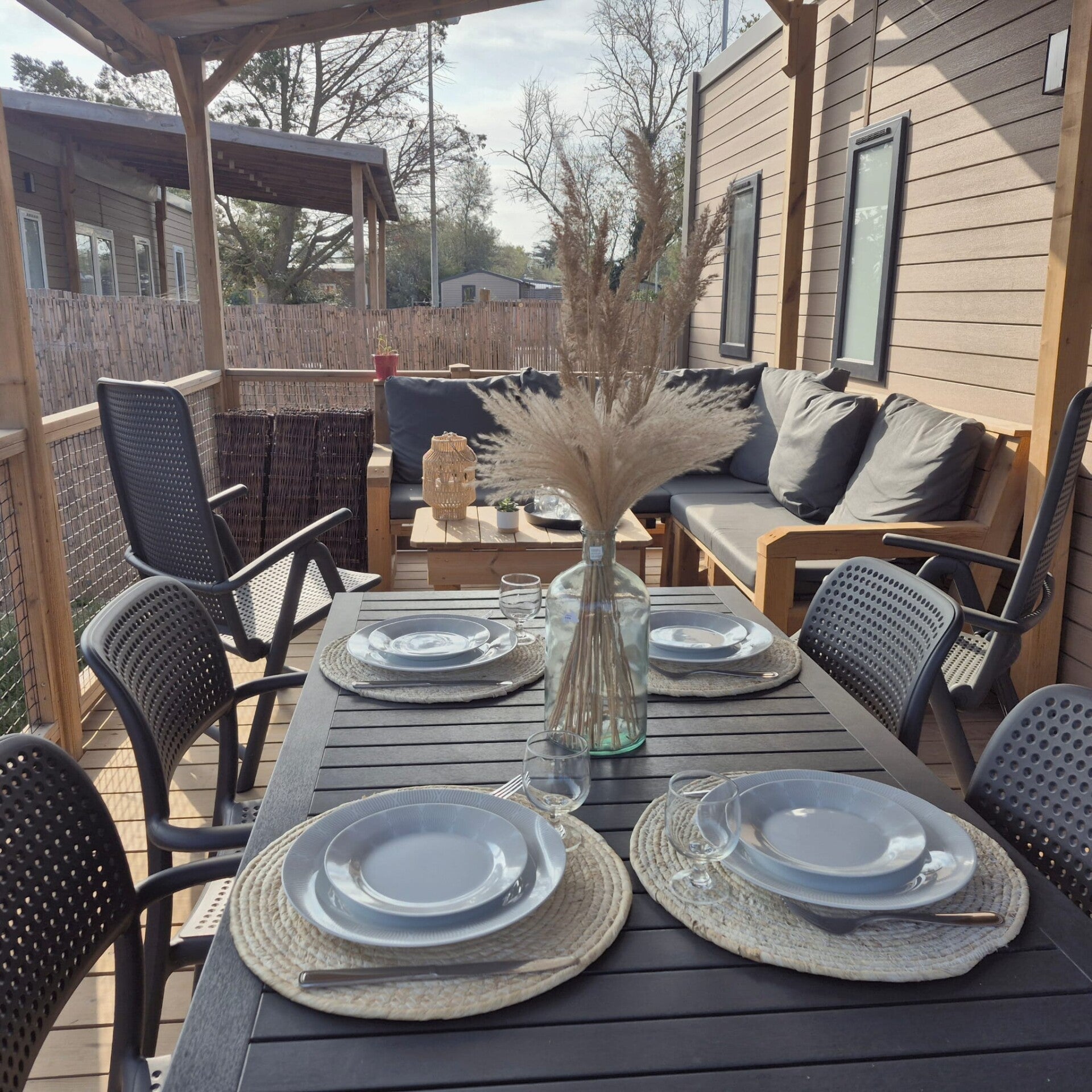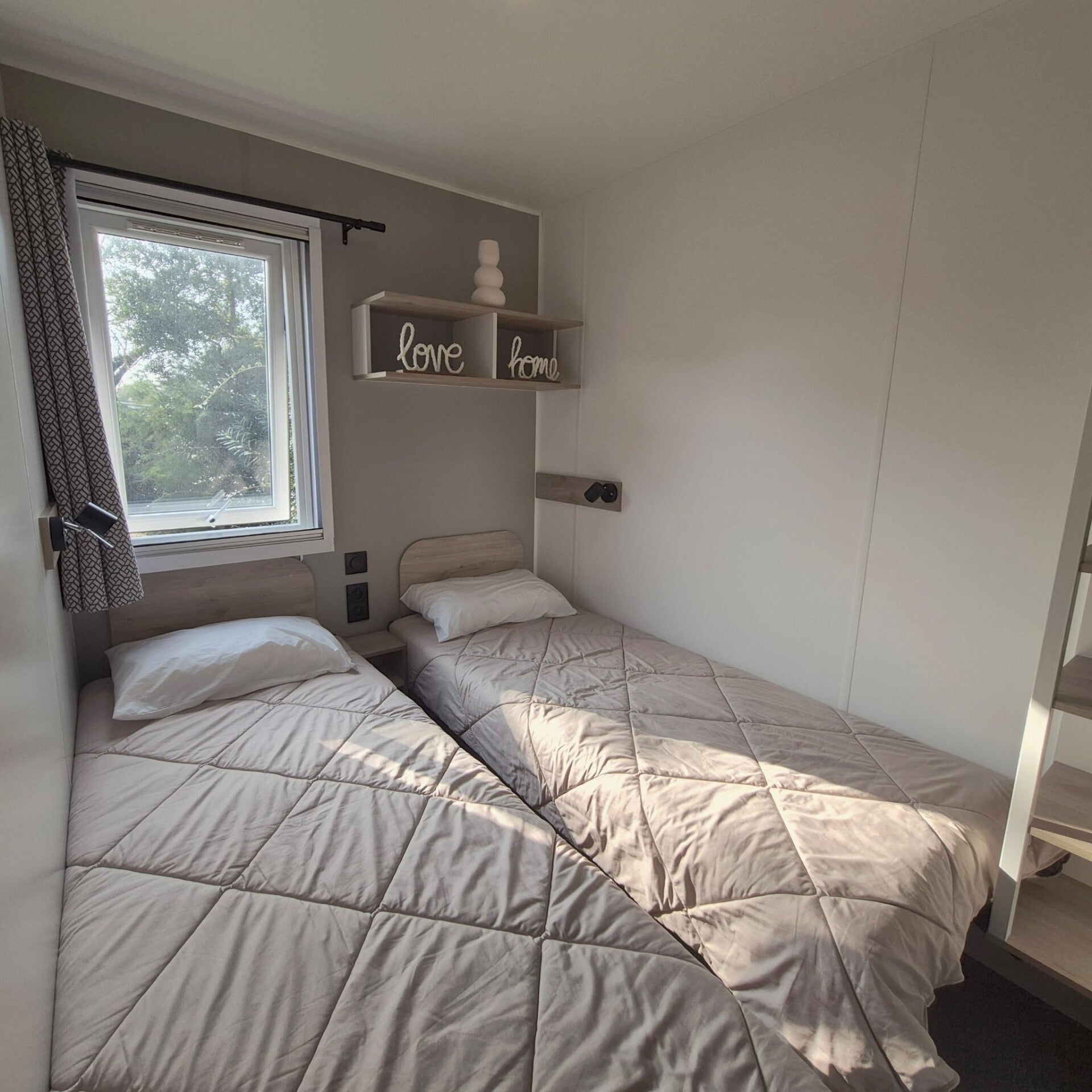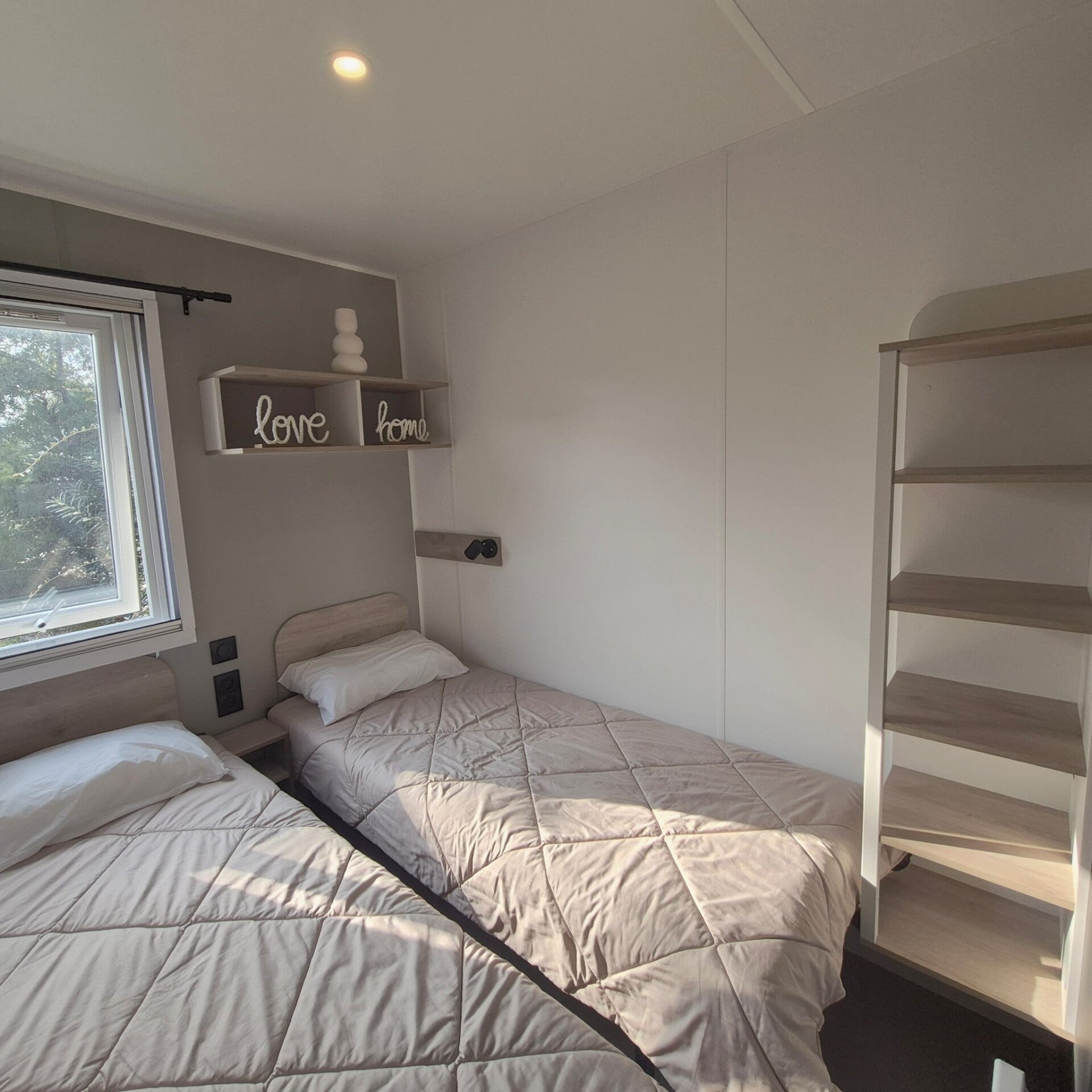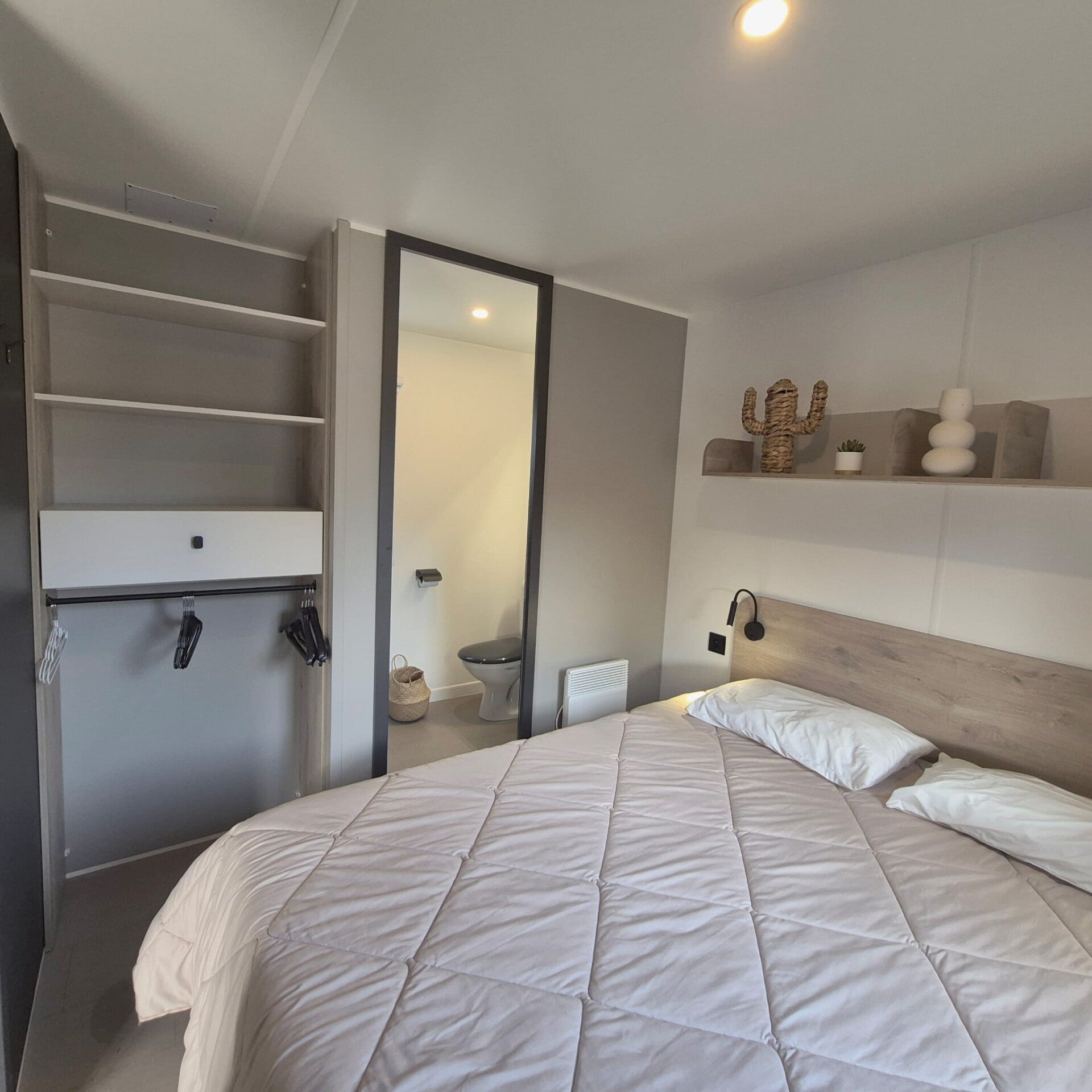 Ce mobil-home vous accueille dans une ambiance chaleureuse et contemporaine, pensée pour votre bien-être et votre détente.