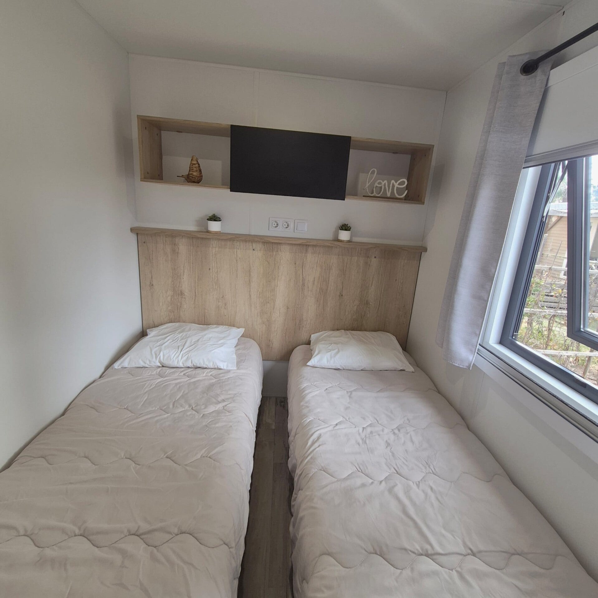 Les deux autres chambres sont équipées chacune de deux lits simples avec placards de rangement, stores occultants et moustiquaires pour des nuits paisibles.