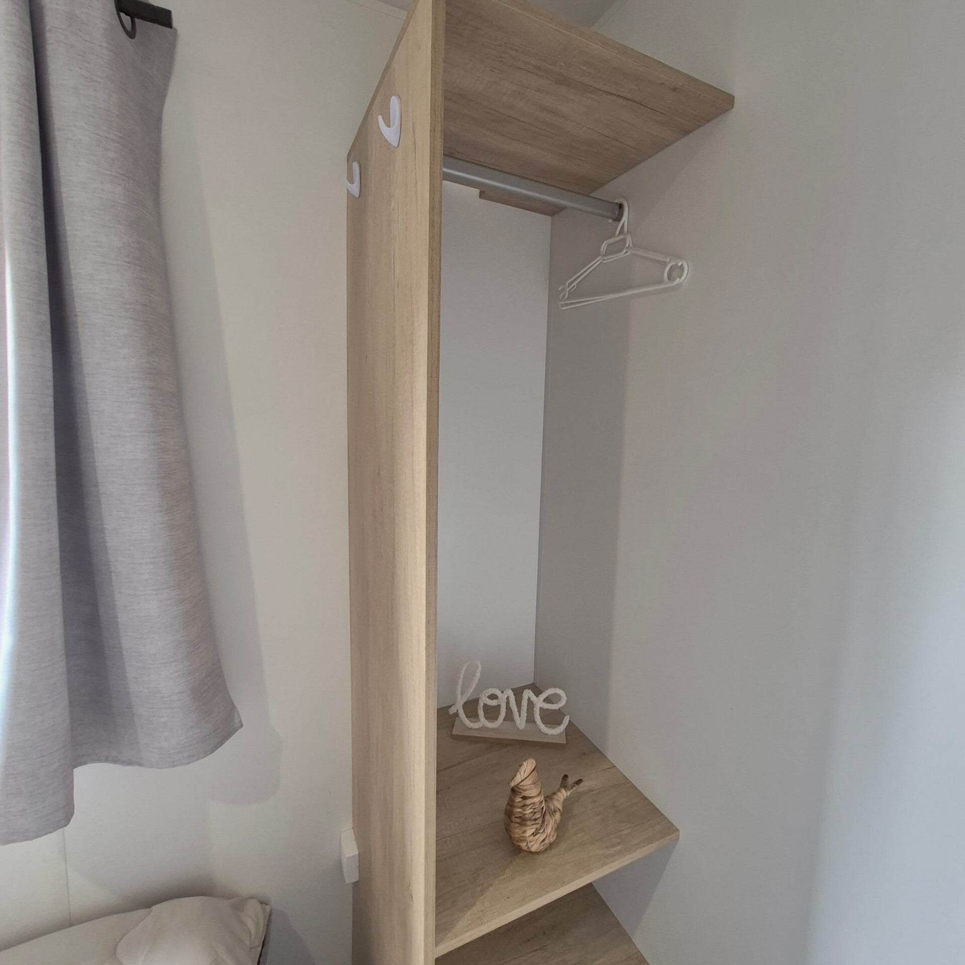 La chambre parentale dispose d’un lit en 160 cm et de rangements pour un confort optimal.