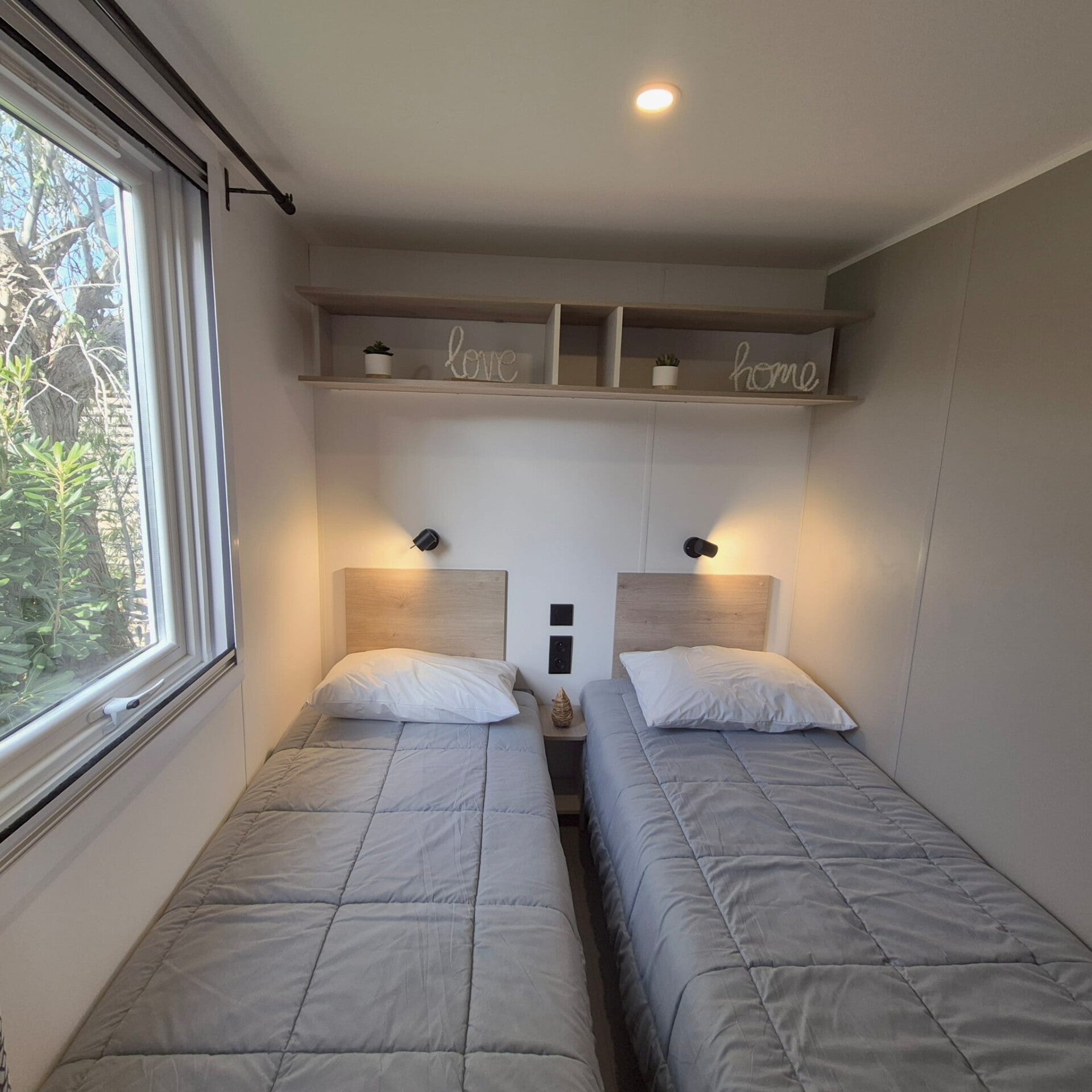 Les deux autres chambres sont équipées chacune de deux lits simples, avec placards de rangement, stores occultants et moustiquaires, pour des nuits paisibles et confortables.