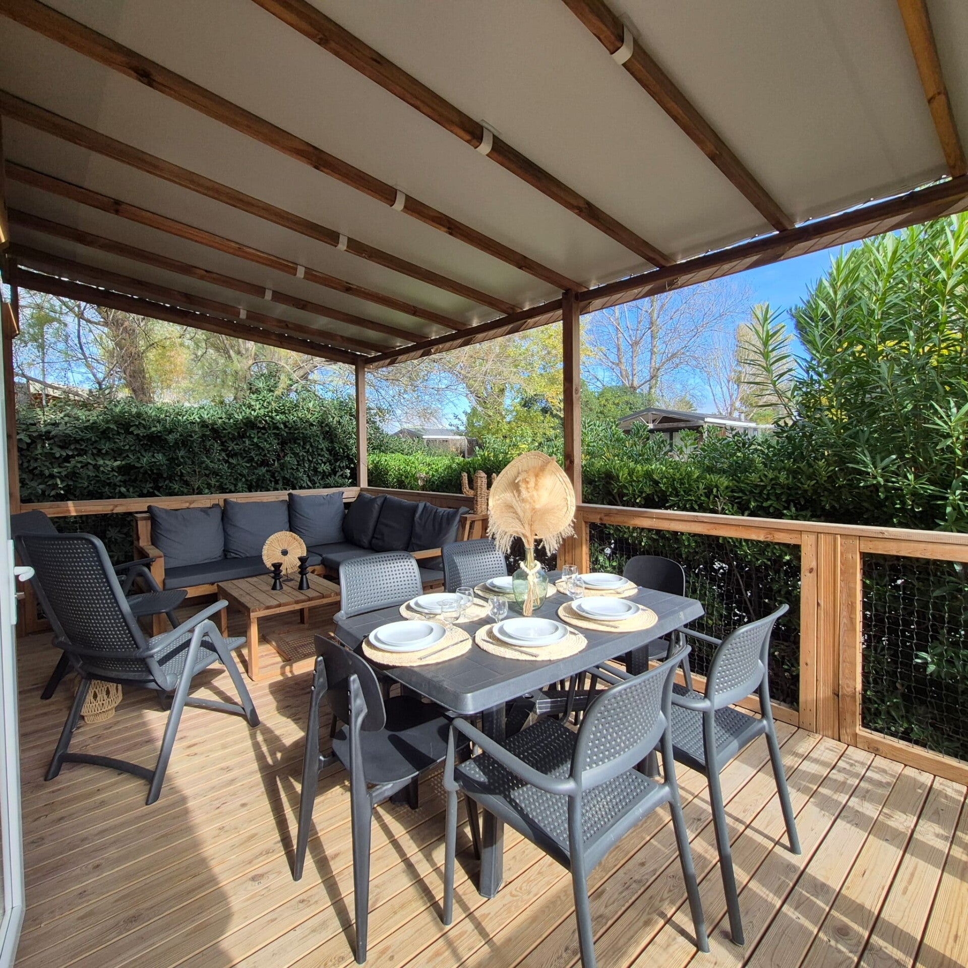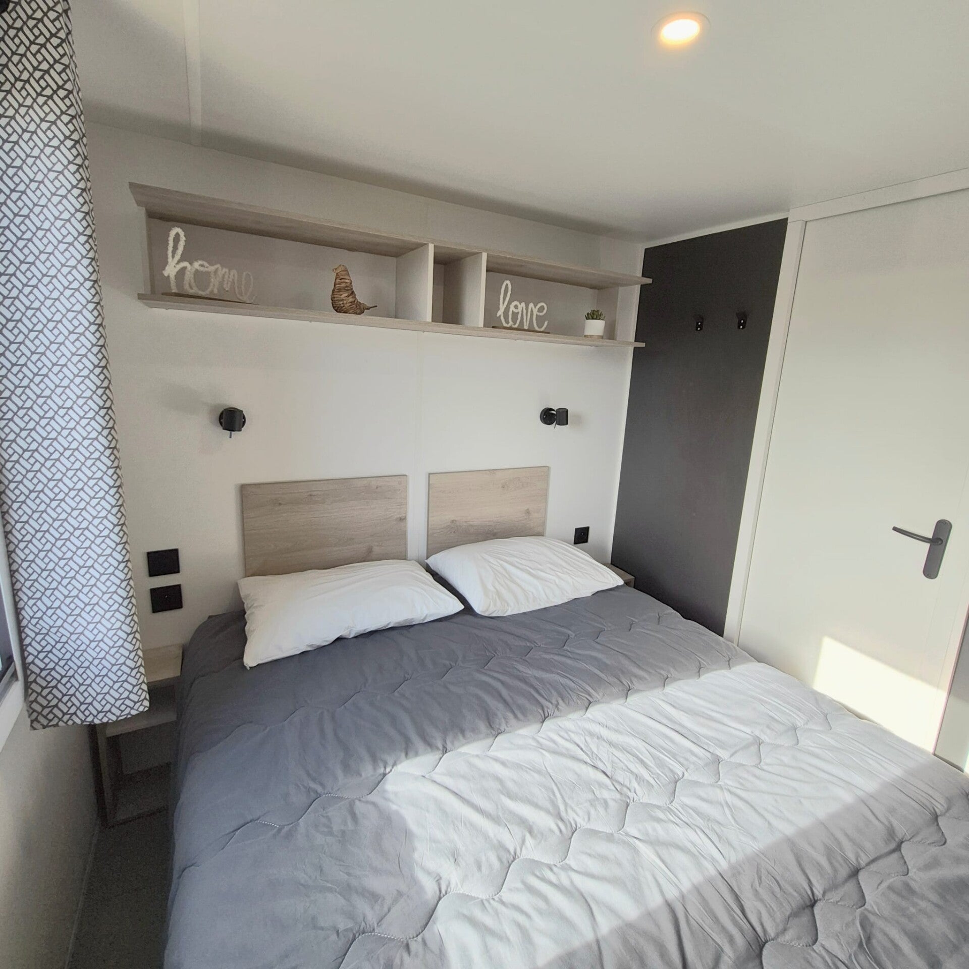Le Havre de Paix est un mobil-home moderne et chaleureux, idéalement situé à proximité du parc aquatique, dans un secteur calme et sans vis-à-vis.
